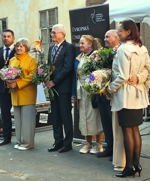 Present at the ceremony: Mayor of Ladce Municipality Mr. Ing. Jaroslav Koyš, Golden Europea European Prize laureate Ms. MgA. Alena Teicherová (SVK), members of the ArteRelax Dubnica n.V. association (SVK), supporters of the laureate Ms. Silvia from Střední Považí and the cities of Žilina and Iľava (SVK)